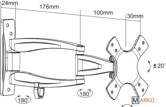| Угол поворота (без ТВ) | 180 ° |