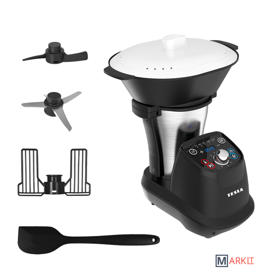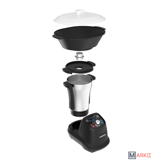 Чашу для приготовления пищи из нержавеющей сталиНасадка для приготовления на пару с крышкойЛезвиеНасадка для тестаНаадка для взбиванияЛопаткаМерный стакан 35 млцветная печатная кулинарная книга с рецептамируководство пользователя