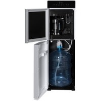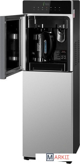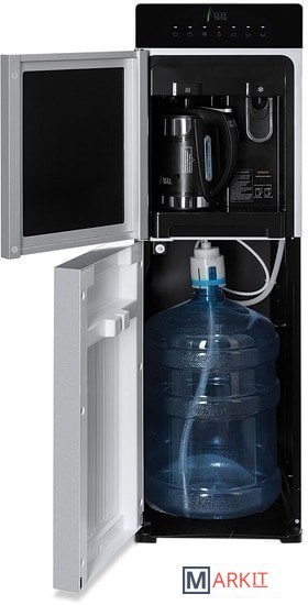 Особенность аппарата, встроенный литровый чайник! Горячая вода нагревается в чайнике,а объем наливаемой воды, регулируется кнопками на передней панели. Разливать горячую воду, так же можно только из чайника! Холодная вода набирается из крана (кран – нажим кружкой). Преимуществом аппарата, является высокая производительность нагрева горячей воды.Панель управления с возможностью отключения нагрева и/или охлаждения воды. Индикация режимов нагрева/охлаждения и отсутствия воды в бутыли. Тихая работа водяного насоса. Защита от протечек. В боковых панелях имеются отверстия под крепления держателей для стаканов.