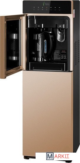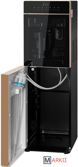 Особенность аппарата, встроенный литровый чайник! Горячая вода нагревается в чайнике,а объем наливаемой воды, регулируется кнопками на передней панели. Разливать горячую воду, так же можно только из чайника! Холодная вода набирается из крана (кран – нажим кружкой). Преимуществом аппарата, является высокая производительность нагрева горячей воды.Панель управления с возможностью отключения нагрева и/или охлаждения воды. Индикация режимов нагрева/охлаждения и отсутствия воды в бутыли. Тихая работа водяного насоса. Защита от протечек. В боковых панелях имеются отверстия под крепления держателей для стаканов.