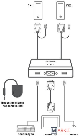 Markit » Кабели, адаптеры, разветвители » KVM переключатель D-Link KVM-221