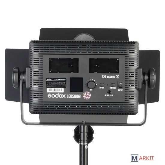 Студийный осветитель Godox LED500C разработан как портативный универсальный источник постоянного света с регулируемой цветовой температурой, работает от аккумуляторной батареи и от сети переменного тока.Мощность 32 ВтLED500C излучает световой поток с освещенностью до 2900 люкс (на 1 м/4100К), при этом максимальная потребляемая мощность составляет всего 32 Вт.Регулируемая цветовая температураОсветитель с индексом C является биколорным, цветовая температура регулируется в пределах 3300К-5600К±300К. Данный осветитель можно настроить на сбалансированное освещение совместно с любым другим источником освещения (от лампы накаливания до солнечного света), также это дает дополнительные творческие возможности в создании различных художественных эффектов.Дистанционное управлениеОсветитель совместим с пультом дистанционного управления RC-A5 (приобретается отдельно), который позволит управлять всеми функциями осветителя на расстоянии более 20 м. Пульт поддерживает функции вкл/выкл осветителя, выбор канала/группы и регулировку яркости.Удобная панель управленияНа панели управления находится контрастный ЖК-дисплей, регулятор яркости/цветовой температуры, кнопка выбора канала/группы и кнопка stop/run (для отключения осветителя с последующей возможностью включения его с пульта). На большом дисплее с яркой подсветкой хорошо видно параметры, а удобный широкий цифровой регулятор позволяет управлять яркостью с шагом 1% в диапазоне 10-100%.Функция памятиИспользуемые настройки сохраняются в памяти осветителя автоматически, при следующем включении можно быстро вернуться к работе.4-лепестковые шторки в комплектеЧетырехлепестковые шторки помогут получить световой акцент на объекте съемке или избежать нежелательной засветки объектива камеры.Питание от сети или от аккумулятораНа задней панели осветителя расположены 2 отсека для установки аккумуляторных батарей серии NP-F (батареи приобретаются отдельно). Индикатор заряда батареи отображается на ЖК дисплее осветителя. В условиях студийной съемки осветитель можно подключить к сети 220В с помощью входящего в комплект сетевого адаптера.