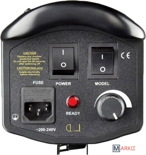 Максимальная мощность галогенового осветителя 1000Вт, плавная регулировка до 1/32, корпус металлический, крепление для аксессуаров «BOWENS»