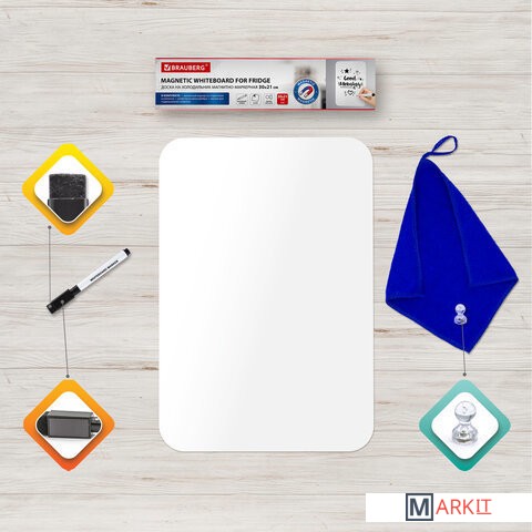 Магнитно-маркерная доска односторонняя на холодильник предназначена для письма маркерами для белых досок и меловыми маркерами. Это гибкая магнитная доска, которая легко крепится к гладким металлическим поверхностям и не требует дополнительной фиксации.Это идеальный инструмент для личного планирования, заметок или переписок со своими домочадцами, рисования или черчения графиков, ведения учёта калорий, продуктов, необходимых для покупки. Доска замечательно подходит для развития творческих способностей. Имеет многоразовую поверхность «пиши-стирай», выполненную из ПВХ.В комплекте: черный маркер для белых досок с магнитом и стирателем в колпачке, салфетка из микрофибры (с «ушком» для подвешивания) и магнит специальной формы, удобной для подвешивания салфетки. Во избежание преждевременного высыхания маркер рекомендуется хранить на холодильнике, колпачком вниз.Поверхность доски не боится воды, но избегайте попадания воды на края во избежание расслаивания.Для очистки доски используйте влажную салфетку.Корректируйте записи при помощи стирателя, встроенного в колпачок маркера.Размер доски 30х21 см (формат А4), так что вы легко найдете для неё место на своем холодильнике среди своих любимых памятных магнитов.Важно! НЕ ИСПОЛЬЗОВАТЬ перманентные маркеры!