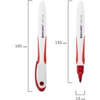 Высококачественный маркер BRAUBERG «SOFT LITE» для белой доски. Предназначен для письма на досках с магнитно-маркерной поверхностью.Маркер для доски красного цвета обладает круглым пластиковым корпусом диаметром 13 мм. Корпус оснащен резиновыми вставками для более удобного использования. Наконечник круглой формы обеспечивает толщину линии письма 3 мм, что позволяет писать крупным шрифтом, который будет хорошо виден. Благодаря спиртовой основе чернила быстро высыхают и не оставляют разводов, легко стираются сухой губкой. Изделие не перезаправляется. Цвет клипа и резиновых вставок соответствует цвету чернил.