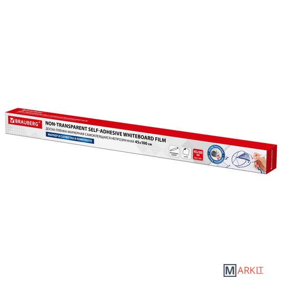 Доска-пленка BRAUBERG предназначена для письма и рисования специальными маркерами. Клеится на любую ровную поверхность. Увеличенная толщина пленки позволяет избежать проблемы с просвечиванием.Представляет собой рулон размером 45х100 см. Легко клеится на гладкую, ровную поверхность. Не оставляет следов при переклейке. При желании можно разрезать рулон на разнообразные фигуры. Инструкция по наклеиванию размещена на упаковке. Маркер для белых досок и салфетка из микрофибры в комплекте. Подложка разлинована в клетку (1 клетка = 1 см) для удобства разрезания на необходимые части. Пленку также можно использовать для обновления своей старой магнитно-маркерной доски.
