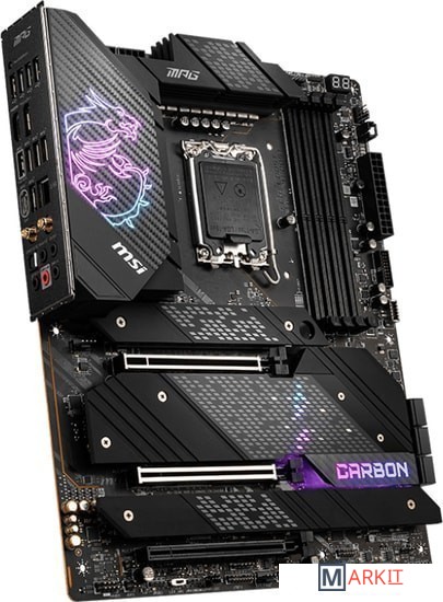 Поддержка процессоров 12-го поколения Intel Core / Pentium Celeron для разъема LGA 1700Поддержка памяти DDR5 с частотой 6666 МГц и выше (в режиме разгона)Высокоскоростные интерфейсы: слоты PCIe 5.0, M.2 (PCIe 4.0 x4), USB 3.2 Gen2x2Мощная система питания: схема 18+1+1 с прямым подключением фаз, два 8-контактных разъема питания процессора, технологии Core Boost и Memory BoostЭффективная система охлаждения: большой радиатор с тепловой трубкой, термопрокладки на транзисторах с теплопроводностью 7 Вт/(м·K), дополнительные термопрокладки на дросселях, радиаторы Shield Frozr на слотах M.2Подсветка Mystic Light с гибкой регулировкой: 16,8 млн цветов и несколько визуальных эффектов, подключение внешней адресуемой и неадресуемой подсветкиКонтроллеры 2.5G Ethernet (с трафик-менеджером LAN Manager) и Intel Wi-Fi 6E: высокоскоростное и стабильное проводное и беспроводное сетевое подключение для широкого спектра приложенийАудиосистема Audio Boost 5: высококачественное звучание, создающее неповторимую атмосферу в играхВысококачественная конструкция: 8-слойная печатная плата с увеличенным содержанием медиПредустановленная панель ввода/вывода: защищает от электромагнитных помех и облегчает установку материнской платы