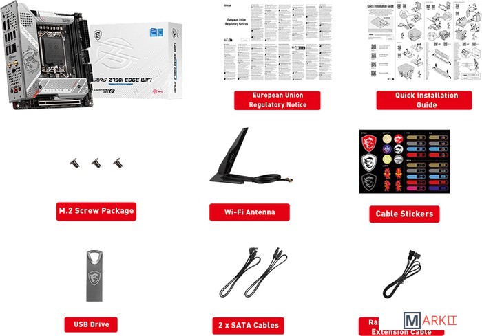 Материнская плата MPG Z790I EDGE WIF представлена в серебристо-белом оформлении. Стильный дизайн сочетается в ней с отличной производительностью.Серия MPG привлекает пользователей сочетанием высокой производительности и уникального стиля. Все больше геймеров, следуя современным тенденциям, хотят подчеркнуть свою индивидуальность. Именно поэтому серия MPG фокусируется не только на мощности линейки устройств, но и на их внешнем виде.Увеличенный радиаторБлагодаря увеличенному радиатору увеличивается общая площадь теплорассеяния, что способствует эффективному охлаждению под высокими нагрузками.Чипсетный радиатор FrozrЭффективное решение для охлаждения чипсета: радиатор с вентилятором.Тепловая трубкаСоединяет два радиатора системы питания, чтобы увеличить общую площадь теплорассеяния.Теплорассеиватель для транзисторовТеплорассеиватель для транзисторов На обратной стороне платы располагается теплорассеиватель, который способствует охлаждению силовых транзисторов..Термопрокладка – 7 Вт/(м·K)На транзисторах системы питания имеются термопрокладки с повышенной теплопроводностью, составляющей 7 Вт/(м·K). Дополнительными термопрокладками также снабжены дроссели.Система охлаждения M.2 Shield FROZR с радиатором чипсетаПредназначена для SSD в слотах M.2 и предотвращает падение производительности, которое может случиться из-за перегрева.Поддерживаются процессоры 12-/ 13-го поколения Intel® Core™, Pentium® Gold и Celeron® для сокета LGA 1700Поддерживается память DDR5, до 8000+(OC) МГцВысокоскоростные интерфейсы: слоты PCIe 5.0, Lightning Gen 4 x4 M.2, USB 3.2 Gen 2x2Мощная система питания: Duet Rail по схеме 10+1+1 фаз, Core Boost, Memory BoostЭффективное охлаждение: большой радиатор с тепловой трубкой, термопрокладки на катушках с теплопроводностью 7 Вт/(м·K), технология M.2 Shield Frozr2.5G Ethernet и Intel Wi-Fi 6E: высокоскоростное и стабильное проводное и беспроводное сетевое подключение для широкого спектра приложенийАудиосистема AUDIO BOOST 5: высококачественное звучание, создающее неповторимую атмосферу в играхВысококачественная конструкция: 12-слойная печатная плата, изготовленная по серверным стандартамПредустановленная панель ввода/вывода: защищает от электромагнитных помех и облегчает установку материнской платы