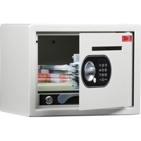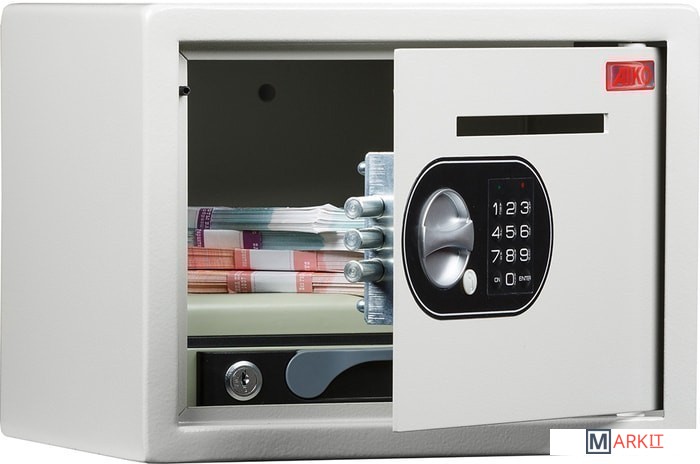 - Предназначен для хранения документов и незначительных ценностей дома и в офисе.- Корпус изготовлен из стального листа толщиной 1,2 мм, толщина лицевой панели - 2,8 мм. - Дверь запирается трехригельным электронным замком, замок оборудован системой аварийного открывания, в комплекте есть мастер - ключ.- В двери имеется специальное отверстие для закладки денег в сейф без возможности доступа кассира к содержимому.- Конструкция сейфа предусматривает возможность анкерного крепления к полу и стене.- На поверхность сейфа нанесено защитное износостойкое покрытие порошкового типа.