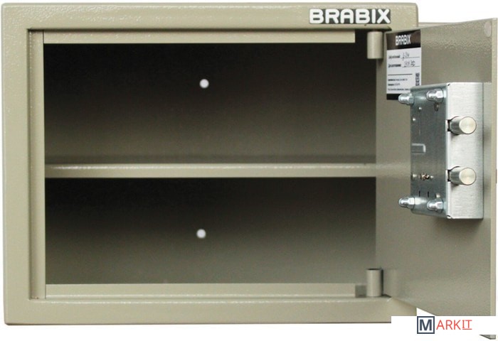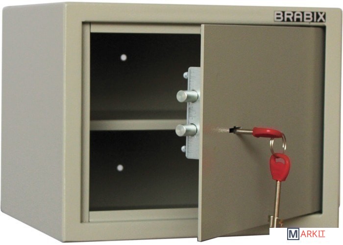 Мебельные сейфы BRABIX серии "Dm" предназначены для для надежного хранения документов, материальных ценностей, а также гражданского малогабаритного огнестрельного и холодного оружия. Могут использоваться как в офисе, так и дома.Комплектуется ключевым 6-ти сувальдным замком сейфового типа BORDER (Россия). В комплекте 2 ключа.Комплектуется 1 съемной полкой.Предусмотрена возможность анкерного крепления к стене и полу (диаметр отверстия 7 мм). Анкерный болт в комплект не входит, приобретается отдельно.Петли сейфа – внутренние.
