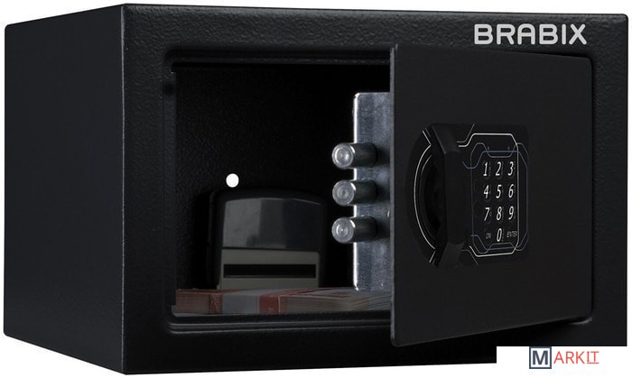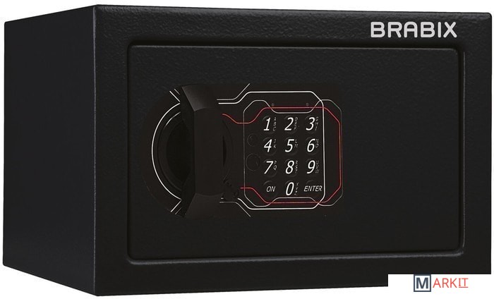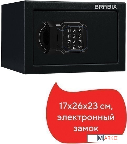 Мебельные сейфы BRABIX серии "SF" предназначены для хранения незначительных ценностей, документов и личного огнестрельного оружия. Могут использоваться как в офисе, так и дома.Изделие имеет ригельную систему запирания, диаметр ригелей до 20 мм.На сейф установлен электронный кодовый замок PLS-3 (Россия) со световой и звуковой индикацией, позволяющий запрограммировать свой уникальный код (от 4 до 8 знаков). В комплект входит аварийный мастер-ключ, на случай, если забыли код или вышли из строя элементы питания. Подробная инструкция по эксплуатации замка в комплекте.