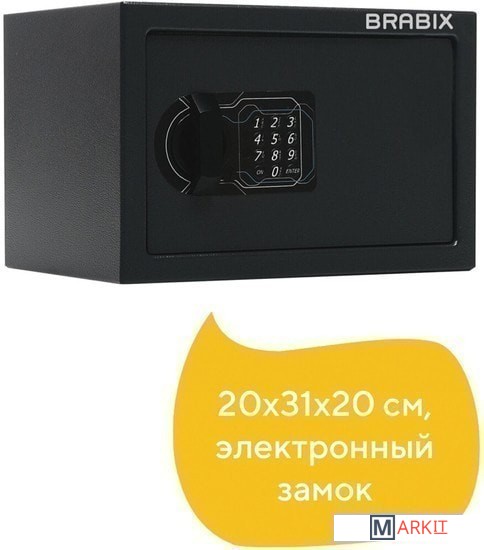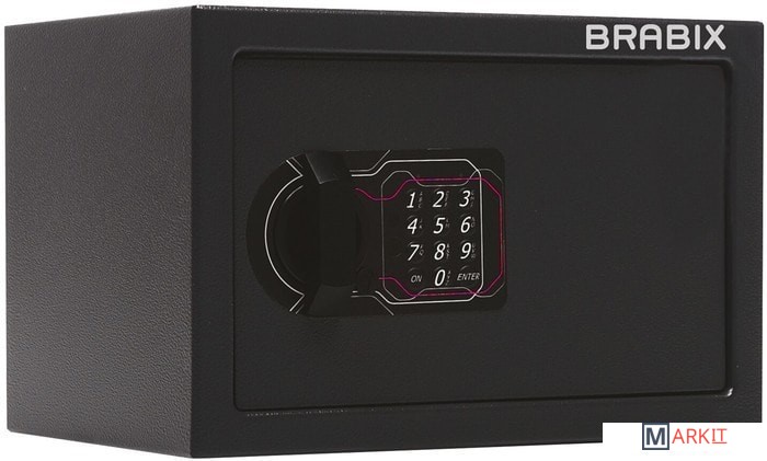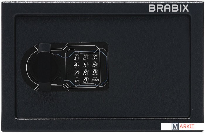 Мебельные сейфы BRABIX серии "SF" предназначены для хранения незначительных ценностей, документов и личного огнестрельного оружия. Могут использоваться как в офисе, так и дома.Изделие имеет ригельную систему запирания, диаметр ригелей до 20 мм.На сейф установлен электронный кодовый замок PLS-3 (Россия) со световой и звуковой индикацией, позволяющий запрограммировать свой уникальный код (от 4 до 8 знаков). В комплект входит аварийный мастер-ключ, на случай, если забыли код или вышли из строя элементы питания. Подробная инструкция по эксплуатации замка в комплекте.
