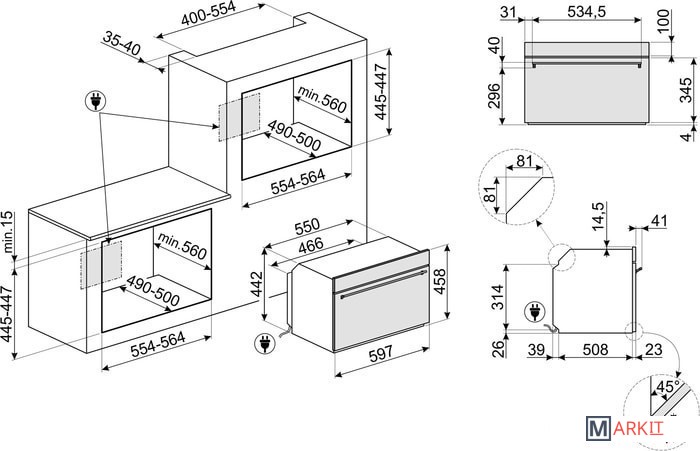 | Размеры ниши для встраивания |