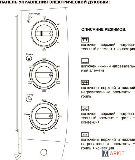 | Режимы работы духового шкафа |