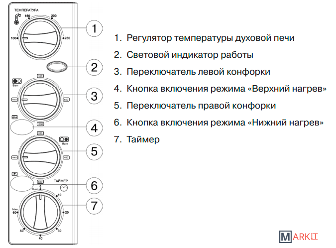 | Режимы работы духового шкафа | |