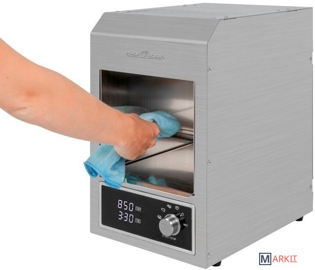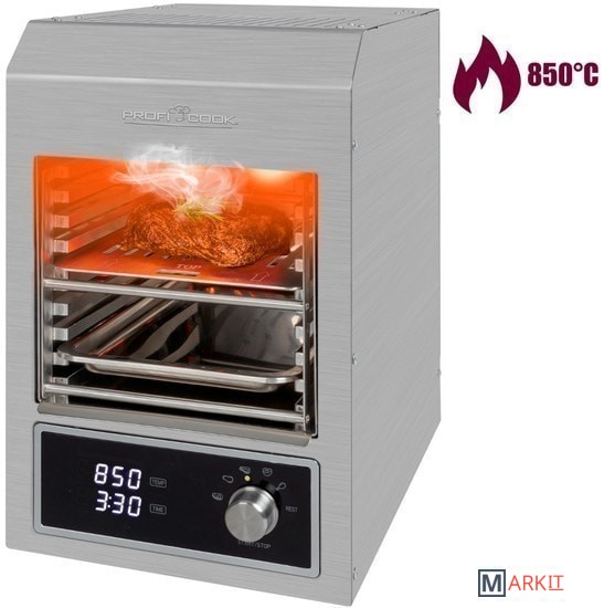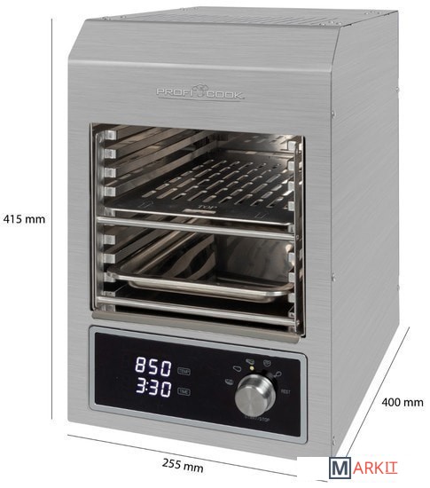 Превосходная температура для гриля - керамическая инфракрасная высокопроизводительная горелка обеспечивает температуру гриля до 850 ° C и позволяет вам отлично приготовить мясо.Многофункциональность - помимо идеального стейка, котлет для бургеров, филе, ростбифа или стейка на косточке, вы также можете использовать PC-EBG 1201 для приготовления запеканок, пиццы или овощей.