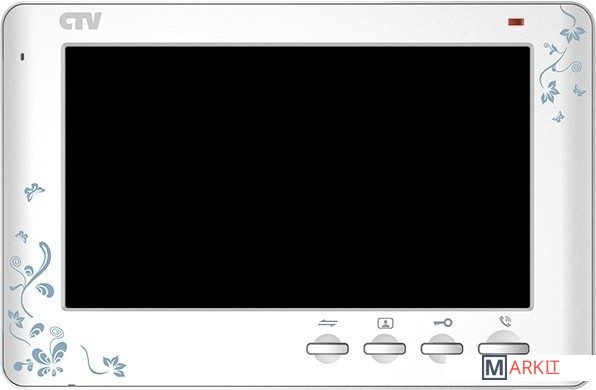 Цветной монитор видеодомофона 7" с детекцией движения. К монитору можно подключить одну или две вызывные панели, одну или две дополнительные внешние камеры, один или два датчика тревоги, дополнительный монитор или телевизор с композитным входом, а также до 3-х дополнительных домофонных мониторов марки CTV.В изделии предусмотрена возможность замены передней декоративной накладки. В комплекте предлагается 3 различных цветовых варианта.