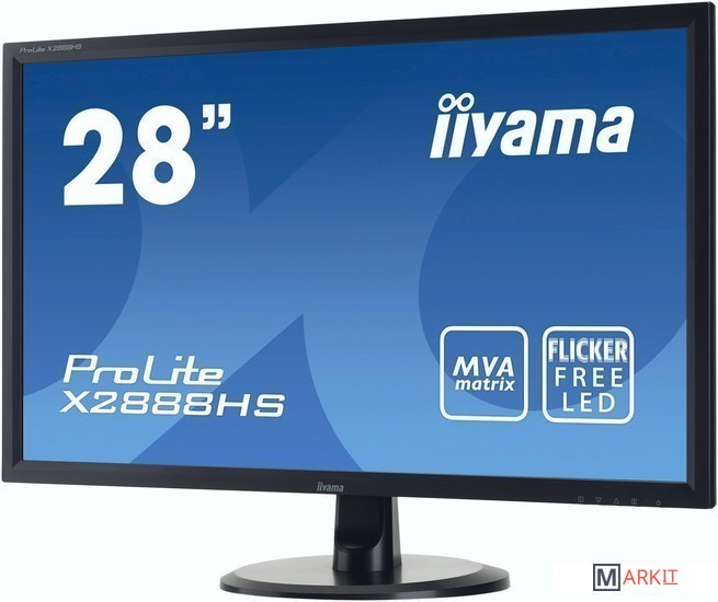 ProLite X2888HS-B1 оснащен 28" матрицей MVA со светодиодной подсветкой, разрешением 1920x1080, временем отклика 5 мс и уровнем динамической контрастности 12 000 000:1 (статическая - 3 000:1), а также двумя встроенными динамиками по 3 Вт. Поддерживает подключение мобильных устройств (MHL).