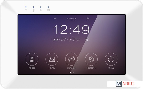 Монитор с возможностью переадресации вызовов на мобильное приложение "vhOme" и удаленного управления замками или встроенным реле. Особенности:- тонкий корпус со стеклянной передней поверхностью;- сенсорный экран с диагональю 7 дюймов;- автоматическая и ручная запись видео или фото;- запись сообщения для посетителей и автоответчик;- поддержка функции детектора движения для записи видео по одному каналу;- поддержка PAL/NTSC;- поддержка функции «не беспокоить» с настройкой по времени;- выносной адаптер питания с возможностью установки в стеновую монтажную коробку (подрозетник);