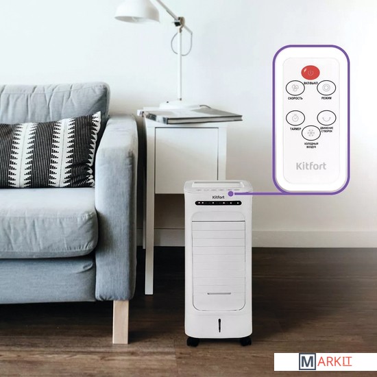 Чистая победа над пылью и аллергенами!КТ-2871 поглощает и отфильтровывает пыль, пух и другие частицы, являющиеся аллергенами. Очищает воздух от крупных частиц пыли и увлажняет его, создавая хороший микроклимат для проживания людей. Может использоваться в квартирах, офисах, загородных домах.Легкое управлениеУправление устройством осуществляется с помощью сенсорной панели управления или дистанционно с помощью пульта дистанционного управления. Пульт ДУ работает от одной батарейки типоразмера CR2025 (входит в комплект).3 в 1: Увлажняю, очищаю, охлаждаю!Вы можете также использовать устройство как обычный вентилятор, без очистки и увлажнения воздуха, не включая насос устройства и не подавая воду на испарительный фильтр в корпусе устройства.Дополнительное охлаждениеВ комплекте к прибору идут 4 аккумулятора холода. В них можно заморозить воду, а затем положить в резервуар для воды для большего охлаждения воды в резервуаре.