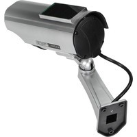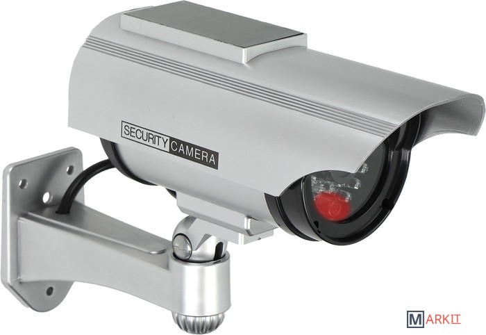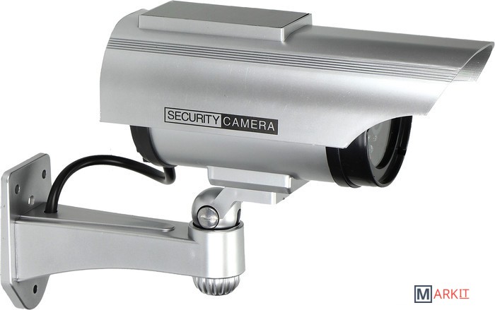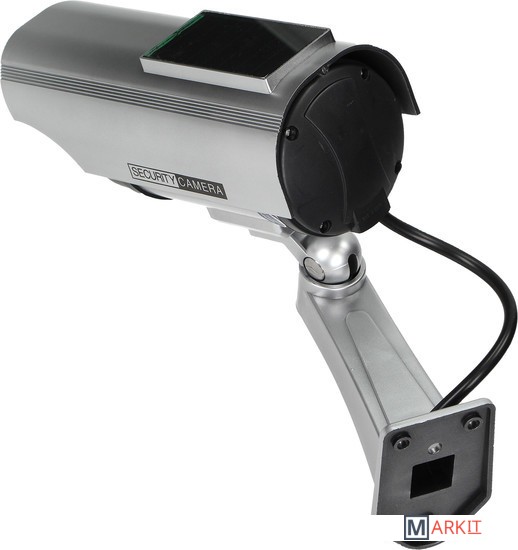 Данный муляж камеры выглядит как настоящая камера видеонаблюдения и имеет мигающий светодиод, питаемый от верхней панели солнечных батарей. Создается впечатление круглосуточного наблюдения. Предназначен для внутренней и наружной установки.Товар не имеет электронные активные цепи. Питание от 2-х батареек формата AA, которые не входят в комплект.