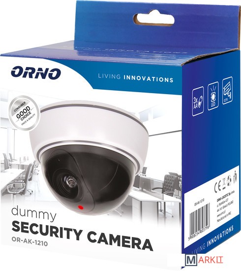 Устройство с видом настоящей камеры видеонаблюдения, предназначенное для установки в помещении. Товар не имеет электронные активные цепи.Питание от 3-х батареек формата AA, которые не входят в комплект.