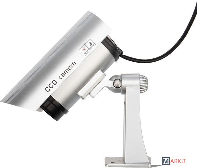 Муляж камеры видеонаблюдения - это отличное решение для дома, дачи и бизнеса! Используйте муляж камеры видеонаблюдения в том случае когда нет острой необходимости в установке действующей системы. Не отличим от обычной камеры. Мигающий красный светодиод (каждые 5 секунд). Питание: батарейки AА - 2шт. Материал: пластик.