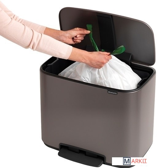 Бесшумный – плавное закрывание крышки и необыкновенно мягкий ход педали.Не пропускает запах – плотно прилегающая крышка.Экономия места – удобно устанавливается вплотную к стене или в углу.Удобный и аккуратный сбор мусора – широкое загрузочное отверстие.Крышка удобно фиксируется в открытом положении специальным переключателем.Удобная очистка – съемное внутреннее ведро из пластика.Отличная устойчивость и защита пола от повреждения – нескользящее основание.Бесплатная упаковка мешков для мусора Brabantia PerfectFit (размер R) – удобная замена и всегда опрятный вид.Бронзовый сертификат "Cradle to Cradle".Бак подлежит вторичной переработке на 98 %, упаковка и внутренние ведра на 100%.