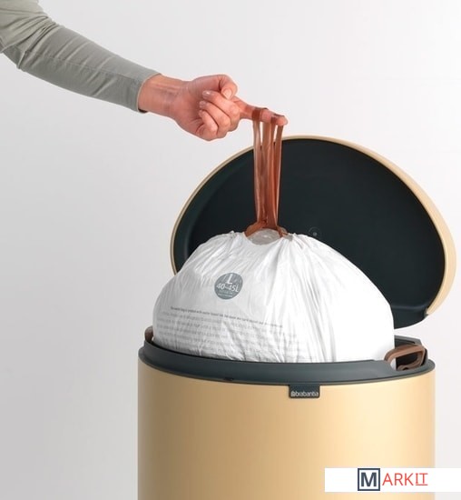 Экономия места – бак удобно устанавливается вплотную к стене или кухонному шкафу.Бесшумное закрывание и мягкий ход педали.При открывании крышка не касается стены.При открывании вручную крышка фиксируется в открытом положении.Удобная очистка – съемное внутреннее ведро из пластика со складными захватами.Удобная смена мешков для мусора – фиксации внутреннего ведра в «поднятом» положении.Бак удобно перемещать – гибкая ручка для переноски.Предохранение пола от повреждений – пластиковое защитное основание.Всегда опрятный вид – в комплекте идеально подходящие по размеру мешки для мусора PerfectFit (размер G).