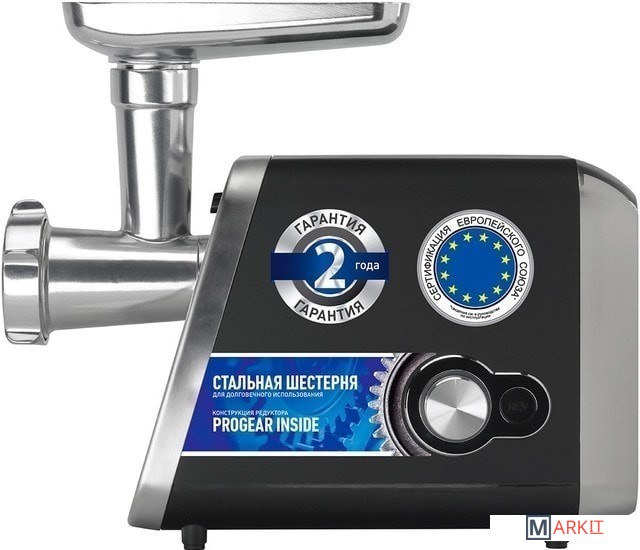 Мощность электрической мясорубки PMG 3044 ProGear Inside составляет 3000 Вт, что позволяет приготовить до 3 кг фарша в минуту. Мясорубка PMG 3044 ProGear Inside отличается не только высокой мощностью, но и надежностью. Редуктор особой конструкции ProGear Inside гарантирует долгую службу устройства за счет износостойкой стальной шестерни. Двигатель мясорубки PMG 3044 ProGear Inside защищен от перегрузок и перепадов электроэнергии благодаря технологии PROtect+: при опасности перегрева мясорубка автоматически отключается. Компактная и стильная, мясорубка PMG 3044 ProGear Inside не займет много места, а нескользящие ножки надежно зафиксируют ее на любой рабочей поверхности. Время непрерывной работы: 3 мин.