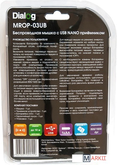 Markit » Компьютерные мыши » Мышь Dialog Pointer Optical RF MROP-03UB