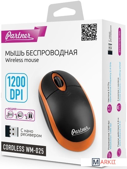 Markit » Компьютерные мыши » Мышь Partner Cordless WM-025 (черный/оранжевый)