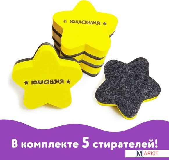 Markit » Аксессуары для офисных досок » Набор губок для стирания Юнландия Звезда 237509 (5 шт)