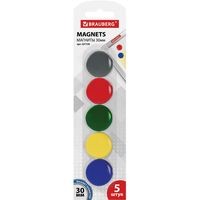 Магниты BRAUBERG круглой формы с пластиковым покрытием для магнитно-маркерных досок.Диаметр магнита составляет 30 мм. 5 штук в комплекте. Разноцветные магниты помогут надежно прикрепить листы бумаги к магнитно-маркерной поверхности досок, витрин и флипчартов. Надежно удерживаются на любой железной или стальной поверхности. Поставляются в удобной блистерной упаковке с европодвесом.
