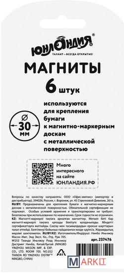 Оригинальные магниты ЮНЛАНДИЯ с рисунком божьей коровки помогут надежно прикрепить листы бумаги к магнитно-маркерной поверхности досок, витрин и флипчартов.Диаметр магнита составляет 30 мм. 6 штук в комплекте. Надежно удерживаются на любой железной или стальной поверхности. Магниты круглой формы выполнены из пластика цветов ассорти. Поставляются в удобной блистерной упаковке с европодвесом.
