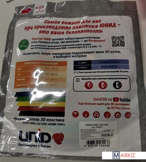 Markit » Расходные материалы для 3д принтера » Набор пластика Unid KID-6-2