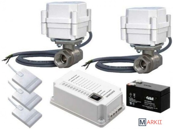 Комплект Gidrоlock Premium Tiemme 3/4" (2 электропривода) служит для своевременного оповещения в случае появления протечки воды, а также автоматически перекрывает подачу воды при помощи шаровых электроприводов (идут в комплекте).