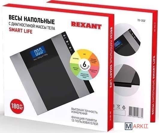 1. Точность взвешивания с погрешностью менее 100 грамм. Результат измерений по четырем высокочастотным датчикам стабильный.2. Увеличенный предел максимальной нагрузки до 180 кг.3. Функция памяти: весы сохраняют в своей памяти персональные данные 12 пользователей.4. Вес тела — слишком относительный показатель, который сам по себе без учета роста, пола и возраста, не дает никакой полезной информации, и только данная модель обладает функцией диагностического расчета массы тела. Эта опция позволит вам разработать верную стратегию работы над телом с учетом индивидуальных показателей. Вычисленные данные подскажут, в какую сторону необходимо скорректировать диету, увеличить или уменьшить интенсивность физических занятий.5. Возможность выбора единиц измерений: килограммы (kg) → фунты (lb). Вам не придется самостоятельно конвертировать показания.6. Экономичность: весы автоматически отключаются через 10 секунд, если прибор не используется.7. Цифры на цифровом LCD дисплее крупные, результат измерения видно четко, высота шрифта 207 мм.8. Удобная индикация разряда и перегрузки.9. Тонкий корпус позволяет удобно хранить, задвигая под мебель.10. Подробная инструкция на русском языке.