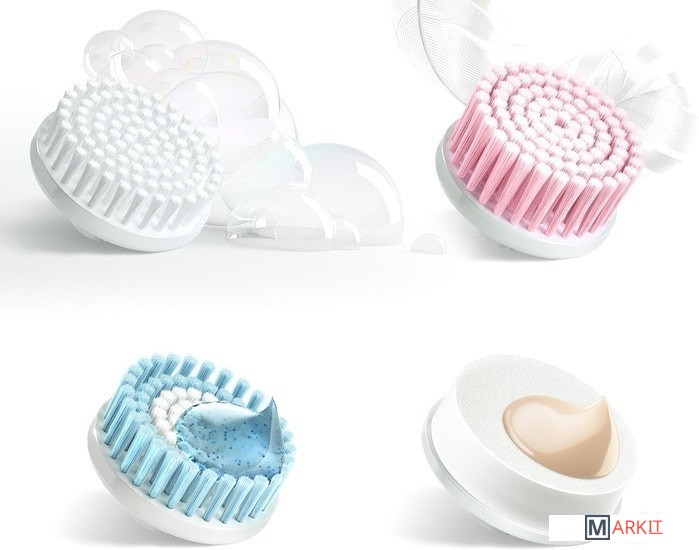 | Комплектация | В комплекте поставляются Обычная щёточка, Ультрамягкая щёточка, Отшелушивающая щёточка и Спонж. |