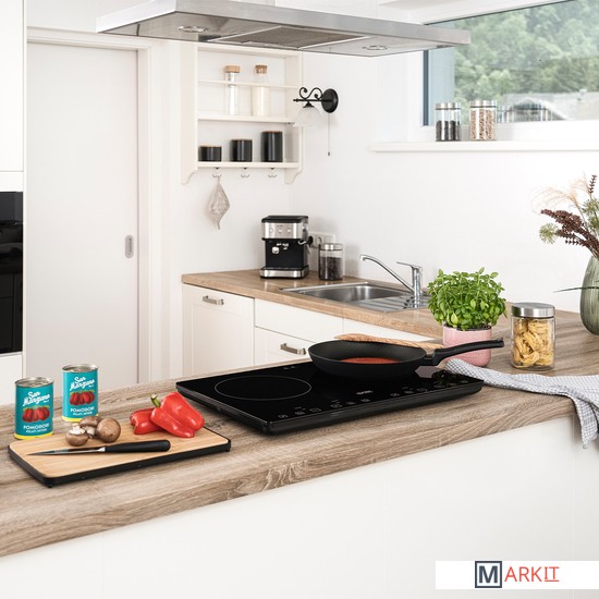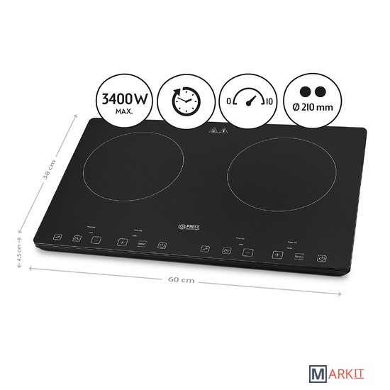 Распределение мощности, на одну конфорку макс. до 2000 Вт.Длина шнура: 1.5 мУровень шума < 55 дБ
