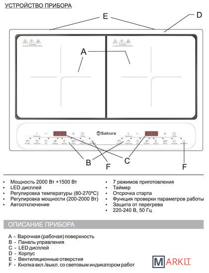 Настольная плита Sakura SA-7158 Код: 247918