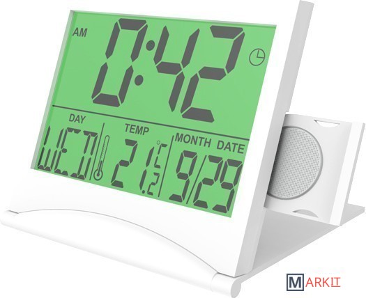 Модель часов с будильником Ritmix CAT-042 отличается компактным дизайном, чрезвычайно удобным как для дома, так и для путешествий. Складной корпус, толщина которого в сложенном виде составляет 1 см, позволяет брать часы с собой куда угодно, при этом, не занимая много места.