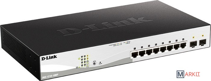 Настраиваемый коммутатор серии WebSmart DGS-1210-10MP, оснащенный 8 портами 10/100/1000Base-T с поддержкой PoE и 2 портами 1000Base-X SFP, поддерживает технологию D-Link Green и расширенные функции управления и безопасности, обеспечивая высокую производительность и масштабирование сети. Функции управления включают SNMP, управление на основе Web-интерфейса, утилиту D-Link Network Assistant и упрощенный интерфейс командной строки (CLI) через Telnet. DGS-1210-10MP поддерживает Auto Voice VLAN, обеспечивая максимальный приоритет для «голосового» трафика. Данный коммутатор оснащен пассивной системой охлаждения, которая обеспечивает бесшумную работу и позволяет продлить срок эксплуатации устройства.