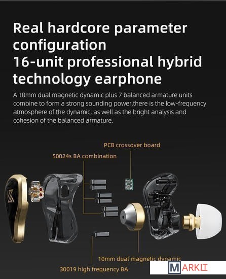 | Количество арматурных излучателей | 7 (6 x 50024s (СЧ+ВЧ) + 30019 (ВЧ)) |