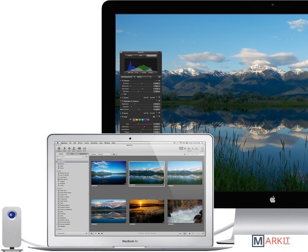 Обновленный 11" ультратонкий ноутбук Apple. Построен на экономичной платформе Intel, оснащается 2-ядерным процессором Core i5 или i7, твердотельным накопителем, экраном стандартного разрешения, портами USB 3.0 и Thunderbolt, встроенным аккумулятором. Корпус сохранил прежний минималистичный дизайн и габариты.