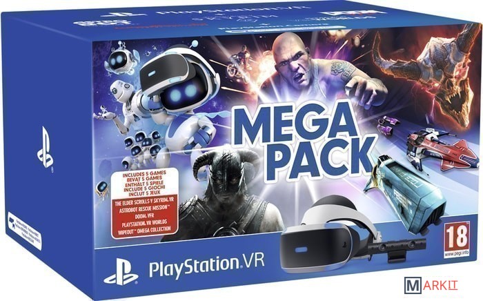 PlayStation VR Mega Pack - комплект из шлема виртуальной реальности, камеры и 5 игр для VR.PlayStation VR v.2 – обновленная версия шлема виртуальной реальности от компании Sony, подключаемая с помощью специального процессора к игровой консоли PlayStation 4 (любой версии) и телевизору. PlayStation VR оснащен дисплеем с диагональю 5.7", с плавной визуализацией и низким временем задержки, что обеспечивает комфортное и зрелищное погружение в мир трехмерной гиперреальности. Общаться с сетевыми друзьями, обсуждать тактику игры возможно благодаря встроенному микрофону на гарнитуре. А вместе с прилагаемыми в комплекте наушниками, PlayStation VR откроют для пользователя объемное звучание, позволяющее точно установить направление и расстояние до звука сверху, снизу и вокруг.Основные изменения по сравнению с первой версией:- в задней части шлема расположен вход для стереонаушников, а сбоку держатель для них;- подключение к процессору единым и более тонким кабелем;- процессорный модуль поддерживает передачу HDR-картинки на телевизор;Процессорный модуль от первой версии PS VR несовместим с новой.