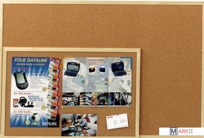 Пробковая мемо-доска в деревянной рамке. Возможность прикрепления информации при помощи кнопок-гвоздиков и булавок. Плотность покрытия тоньше, чем у стандартного варианта.