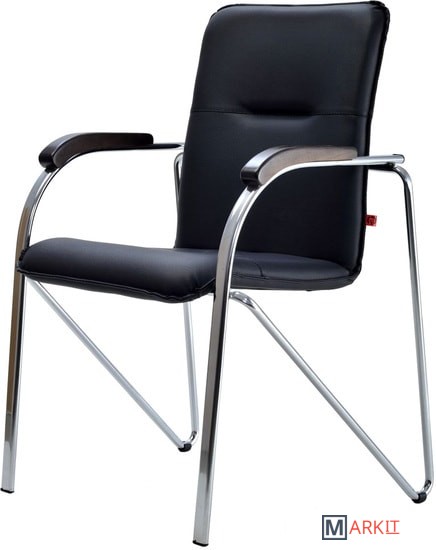 Классический стул для офиса повышенной комфортности. Спинка и сиденье имеют строгие прямые линии, что позволяет ощущать комфорт даже при длительном сидении. Стул имеет удобные подлокотники, плавно переходящие в стильные ножки.