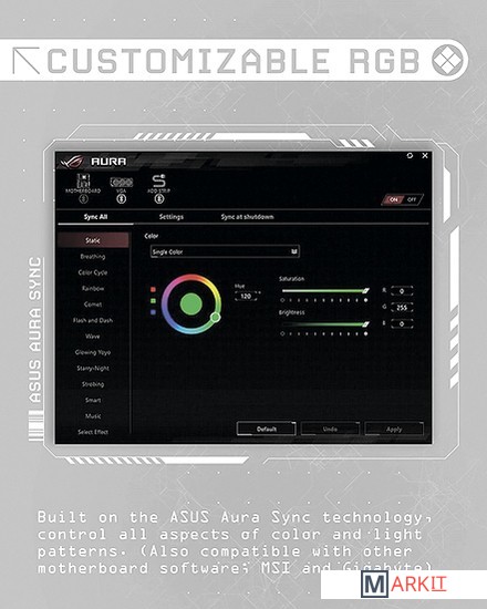 | Подсветка элементов платы | многоцветная (RGB) |