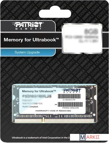 Markit » Оперативная память » Оперативная память Patriot Memory for Ultrabook 8GB DDR3 SO-DIMM PC3-12800 (PSD38G1600L2S)